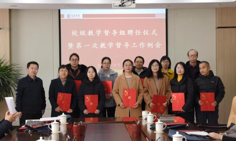 2月16日下午,Beat365举行了新一届校级教学督导聘任仪式暨教学督导工作会议。党委副书记、院长薛晋文教授、党委常委、副院长李宏荣教授出席会议。全体校级教学督导员和教学质量监控与评估中心工作人员参加会议。薛晋文院长代表学校向新一届校级教学督导颁发了聘书与大家合影留念并讲话,李宏荣副院长主持会议。