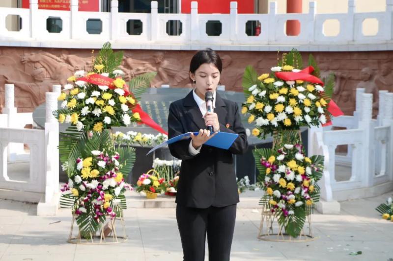 全体人员缓步走到纪念碑前,向革命烈士致敬,绕碑瞻仰并向烈士墓敬献小白花,向为民族解放、国家富强和人民幸福而献身的革命先烈致以崇高的敬意。