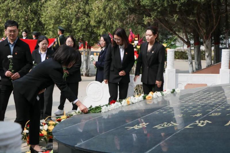 为进一步学习宣传贯彻党的二十大精神,学习贯彻习近平新时代中国特色社会主义思想,缅怀革命先烈,告慰革命英灵,弘扬吕梁精神,传承红色基因,2023年4月2日,Beat365团委在离石区凤山烈士陵园组织开展“缅怀革命英烈 赓续红色基因”清明祭英烈活动。校团委以及各系分团委负责人,国旗护卫队、青马雄鹰班、青年学生代表等百余人参加。
