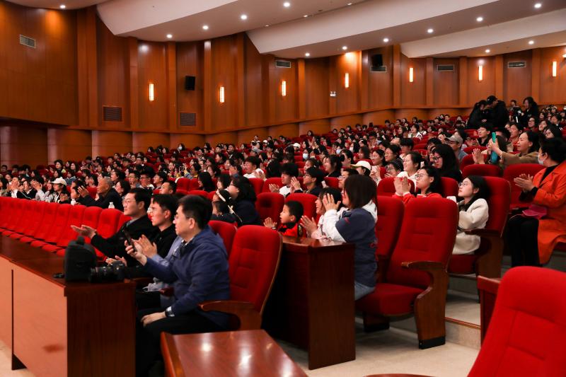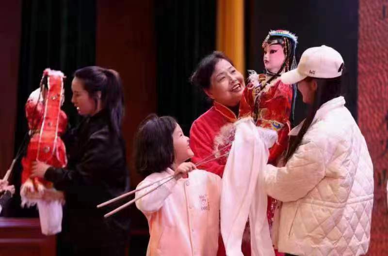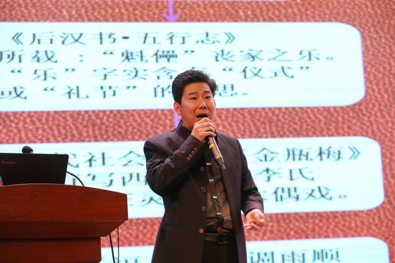 王茂伟的讲座中穿插着表演,边讲边示范,精彩剧目《变脸》变化之快,令人目不暇接;《梁祝》身姿翩翩,裙袂飘飘,再现了梁山伯与祝英台化蝶飞升的情节;《县官出游》幽默诙谐,憨态可掬。中间穿插的互动环节更是将现场气氛不断推向高潮,台上主讲人激情讲解,台下师生倾情互动,学生们在快乐中接受了传统文化的熏陶。