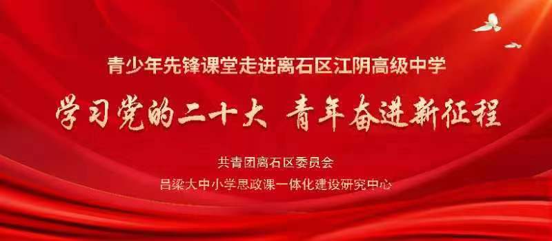 为进一步推动学习贯彻习近平新时代中国特色社会主义思想主题教育往深里走、往实里走、往心里走,坚持不懈用习近平新时代中国特色社会主义思想凝心铸魂,全面贯彻落实党的二十大精神,5月12日,吕梁大中小学思政课一体化建设研究中心和共青团离石区委在离石区江阴高级中学开展“学习党的二十大 青年奋进新征程”青少年先锋课堂。共青团离石区委书记郝倩、副书记冯育健、李易芳全程参与,郝倩主持了活动。