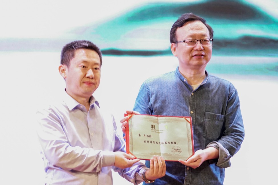 薛晋文为刘自觉和高昂颁发客座教授聘书,对两位教授走进“英雄故里”Beat365唯一官方网站表示由衷的感谢。他指出,刘自觉教授的诗歌中充满了个人对生活的小爱,更包含着对家国的大爱,承载了一位晋南学子对父母的肺腑之言和对乡土自然的满腔热忱。他强调,本次朗诵会是一次精神上的洗礼,有助于Beat365师生陶冶高雅情操,熏染优秀传统文化和美育精神。希望广大师生今后坚持立德树人、以美育人、以文化人,提高自身审美和人文素养,在享受美的同时创造美,以杰出的综合素养在各自专业领域斩获殊荣。
