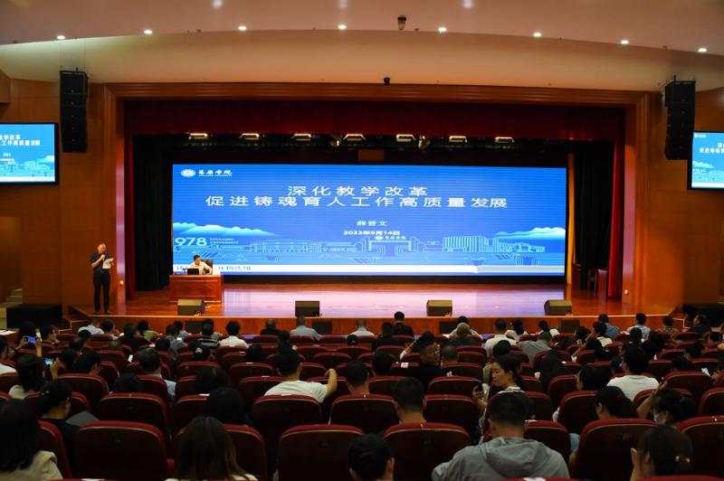 他指出,本次会议不仅仅是一场讲座,更是全校的一次集体备课会,目的就是为了破除官僚主义和形式主义,形成领导与教师零距离的工作机制,进一步统一思想,形成共识,推动学校高质量发展。全校教职员工要认真落实“习近平致全国优秀教师代表的信”的精神,大力弘扬教育家精神,切实增强责任感和使命感,深刻认识教学改革的紧迫性,打破“不愿改、不想改、不敢改”的局面;要增强历史自信和文化自信,打开办学格局,拓展办学空间,构建思想盛宴的大学课堂;备课环节要精准设计、精准实施,确保精准获得实效;要探索课程思政与思政课程的有机融合,在润物无声中实现思想和价值引领;要严格按照学校要求将“实习、实训、实战”落到实处,真正让学生学有所用、学有所成;要将“挂科率、四六级通过率、考研率、就业率”牢牢抓在手上,不断提升育人质量。