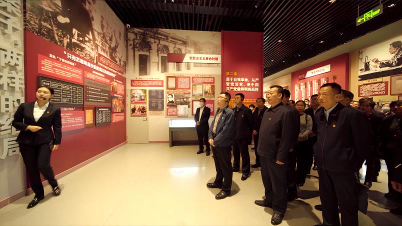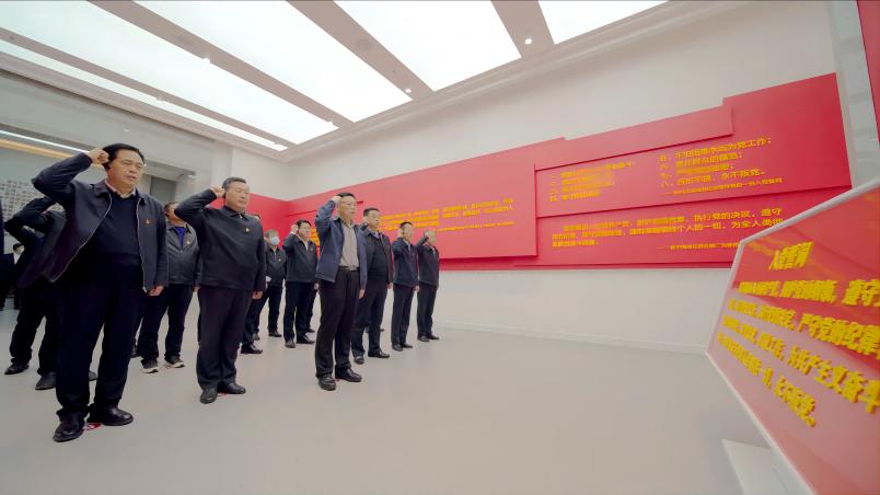 在“时代扣问、初心如磐”主题展厅,大家一起重温了党的百年奋斗和自我革命历程,用党的伟大成就、光荣传统和历史经验坚定信念、凝聚力量、砥砺品格;在“利剑高悬、知畏知止”主题展厅,通过发生在我省的一件件典型案例、一组组惊人数据、一幅幅鲜活图片,不断向我们敲响警钟,作风建设无小事。在“崇德修身、治本之道”主题展厅,大家学习了以传承、弘扬、建设廉洁文化为主线的中华优秀传统文化、革命文化、社会主义先进文化,进一步帮助大家培根铸魂、固本清源。在宣誓厅,面对鲜艳的中国共产党党旗,殷杰同志领誓,大家举起右拳,重温入党誓词,许下严守党的纪律、对党绝对忠诚的庄严承诺。