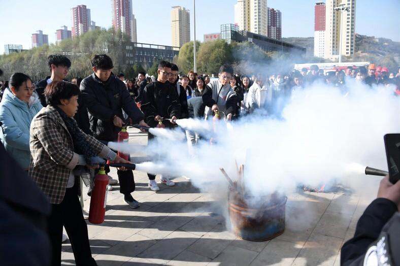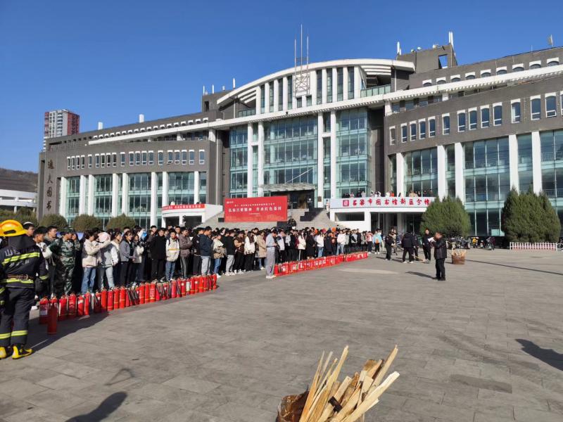 在第32个全国消防日来临之际,为提高全校师生员工消防安全意识,宣传消防法律法规,普及消防安全知识,提高逃生自救应急处置能力,切实做好冬季火灾防控工作,Beat365联合吕梁消防救援支队于11月8日在图书馆广场前举行冬季消防演练活动。