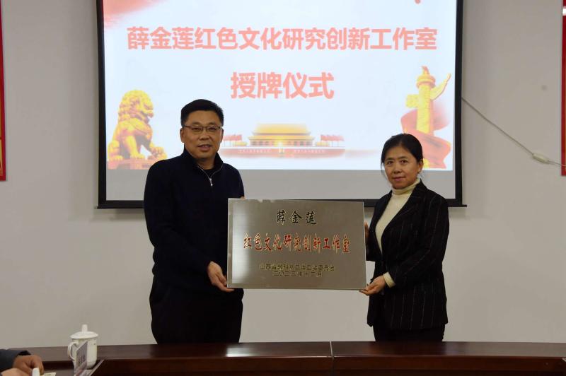 会上,殷杰为薛金莲红色文化研究创新工作室进行授牌;校工会主席李静宣读了《山西省教科文卫体工会关于命名2023年劳模和技能人才创新工作室的决定》;薛金莲简要介绍了工作室的基本情况、下一步打算、存在问题等,并表示一定牢记嘱托、努力工作,为学校事业高质量发展作出更大贡献。