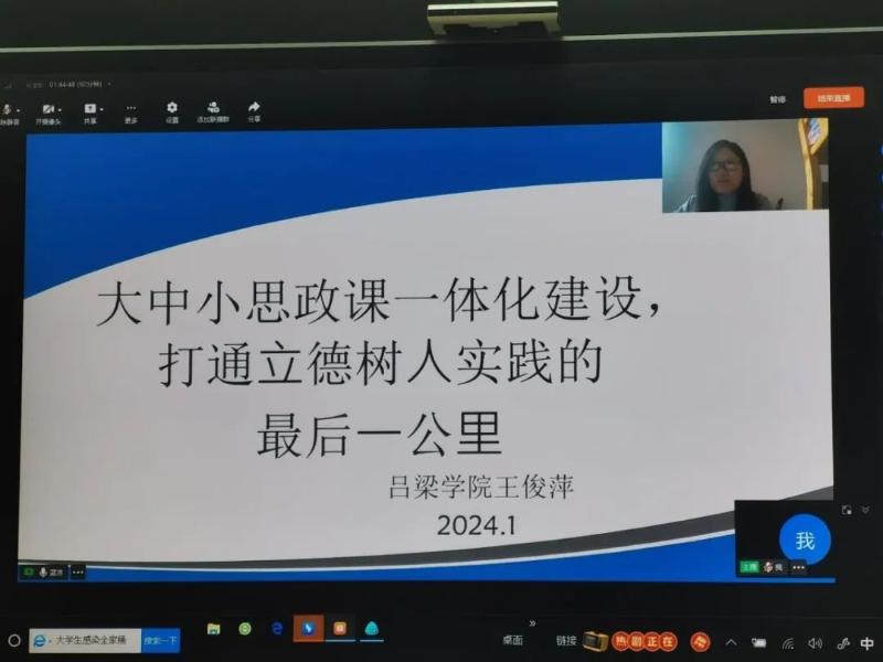 为扎实推进大中小学思政一体化建设,近日,吕梁大中小学思政课一体化建设研究中心、吕梁市教育局教研室、满洲里市教育研修中心和呼伦贝尔学院马克思主义学院联合开展了大中小学思政一体化在线研讨活动。研讨活动由满洲里市教育研修中心副主任翁占才主持,四地思政课教师800多人线上参加了听课及互动。