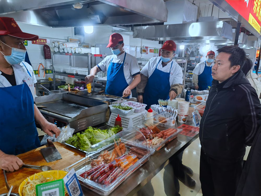 在餐厅,薛晋文同餐厅一线工作人员进行了详细交谈,检查了灭火器是否过期,对用电用火、卫生消防等事宜再三叮嘱。要把安全生产放在第一位,高度重视食品卫生,确保师生用餐安全。