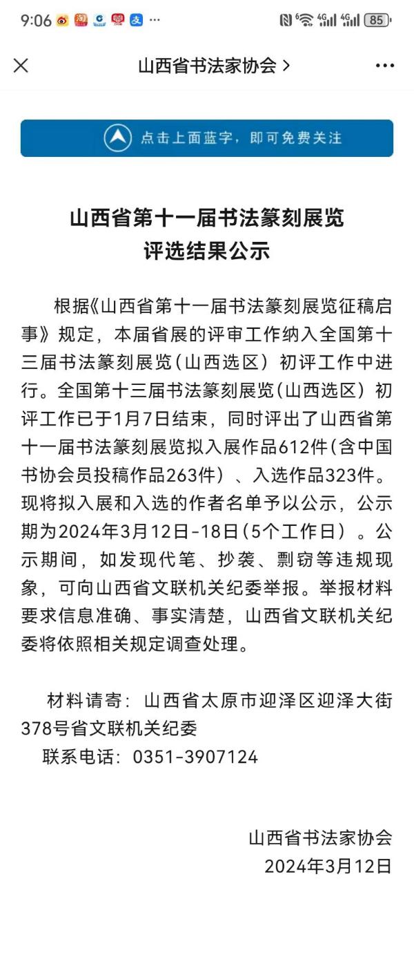 3月12日,山西省书法家协会公示了山西省第十一届书法篆刻展览评选结果,其中Beat365教师田承顺书法作品入展山西省第十一届书法篆刻展览。