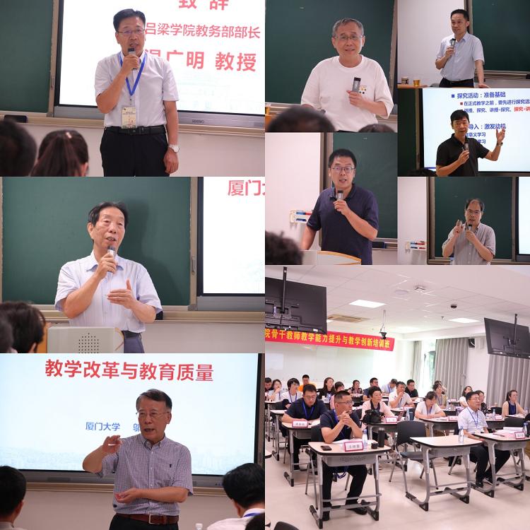 本次培训围绕“教育新发展与教学新理念”主线展开,厦门大学多名一线教学实践的专家学者围绕“人工智能与高等教育”“基于OBE理念的课程教学设计”“翻转课堂与混合金课建设”“教学成果的培育与凝练、申报”“教学改革与教育质量”“一流课程的导向和建设”等六大主题模块授课,研讨、学习。