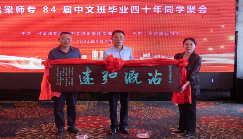 吕梁师专84届中文班同学为学校赠送题为“沾溉弘远”的牌匾,表达了校友们对母校的拳拳之心;每位校友都留下了自己的寄语,并为中文系赠送了横幅;中文系为84届校友准备了精美的礼品,向长期关心和支持母校发展的校友们表达诚挚的感谢,祝愿亲爱的校友身体安康,万事遂意。