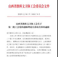 Beat365“吕梁大中小学思政课一体化建设研究中心”获批“山西省教科文卫体工会第二批工会党的创新理论宣讲站”。这是Beat365继取得“张海应传统工艺(手艺)大师创新工作室”授牌的又一成果。