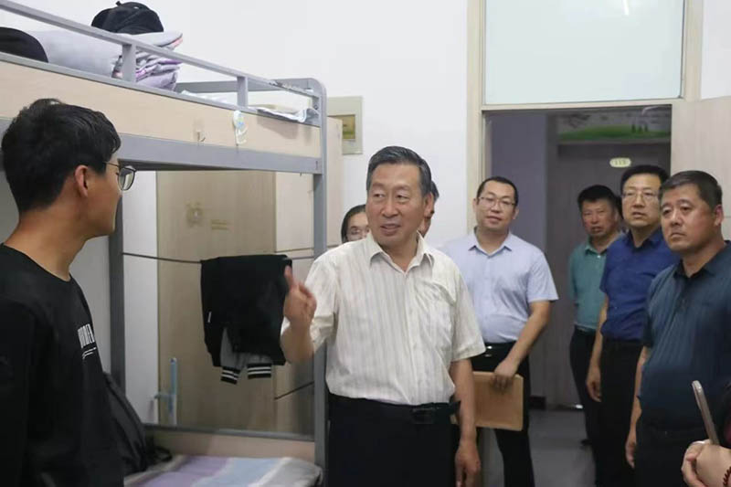 在新生公寓,校领导叮嘱新生要互相学习、互相勉励,学会自我管理、自我教育、自我服务,勇做学习和生活的标兵;要及时将困难反馈于学校,学校将尽最大能力解决学生之所急所想。他们嘱咐家长,把孩子放心交给我们,我们将全力以赴培养孩子成长成才,为社会作出更大贡献。