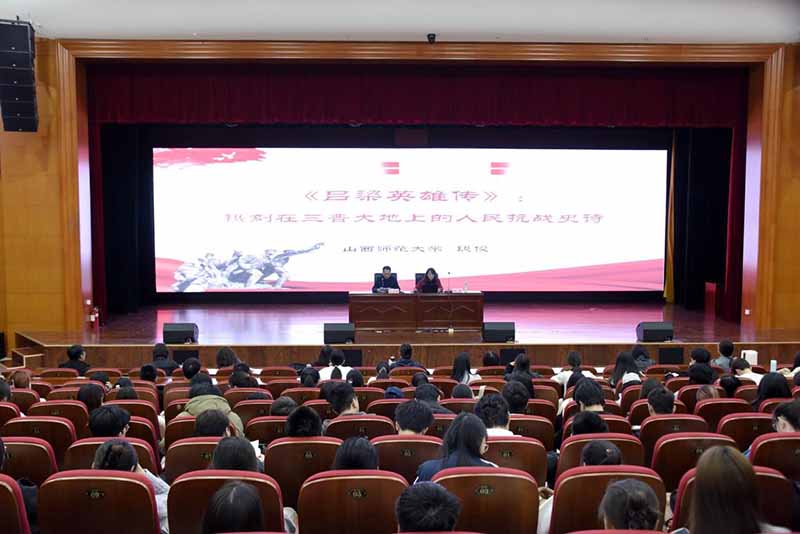 段俊以“《吕梁英雄传》:镌刻在三晋大地上的人民抗战史诗”为主题,从历史、地理、政治、军事、文艺等角度对《吕梁英雄传》的创作背景、文学魅力、影响价值进行了全面解读,以鲜活的人物形象与丰厚的历史资料加深了师生对晋绥抗战文学的理解,坚定了师生将吕梁精神用在当代的信心,引导师生不断传承革命精神,勇做“担当民族复兴大任的时代新人”。