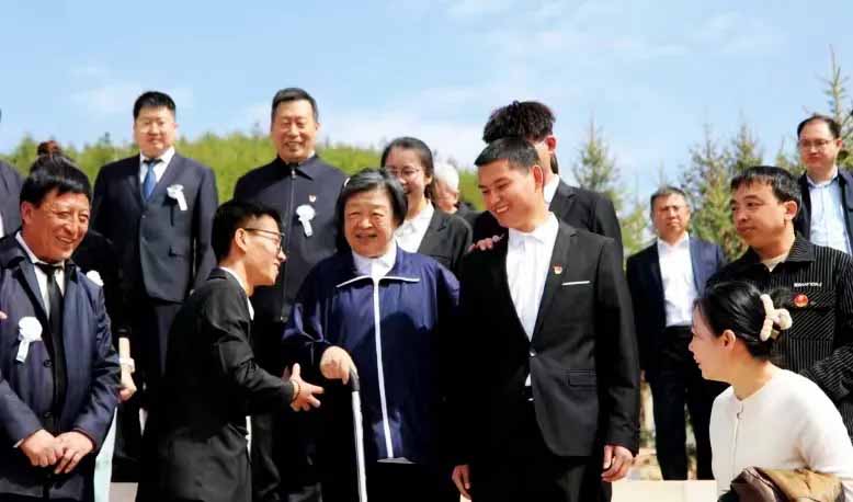 2024年清明在晋绥解放区烈士陵园,贺晓明大姐(中)与Beat365唯一官方网站学生们交流。她左手扶着的学生是高星皓。