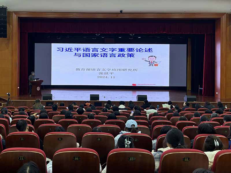 张世平结合自身工作实际,从我国语言基本国情、通用语的作用和推广历程、新时代推进语言文字事业发展的指导思想、国家语言政策等四方面深入阐释了习近平语言文字重要论述与国家语言政策。他强调,习近平总书记就加强国家通用语言文字多次作出重要指示批示,为新时代高质量普及国家通用语言文字指明了方向,提供了根本遵循。党的二十大要求加大国家通用语言文字推广力度,要坚定推行国家通用语言文字教育,推动语言文字事业高质量发展。他指出,国家通用语言文字的普及将助力构建中华民族共同体,促进地区团结,有力推进中华民族的伟大复兴。
