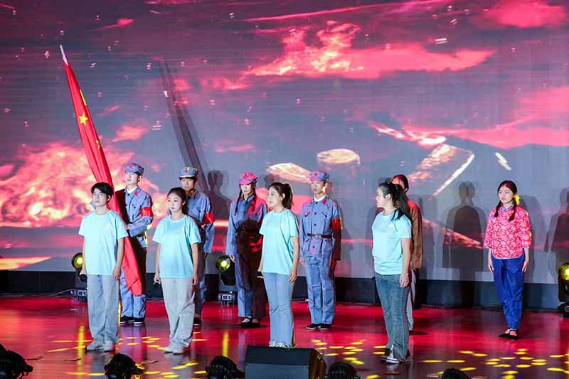 器乐合奏《南泥湾》拉开了晚会的序幕,生动地体现了抗日军民困境奋起、顽强抗战的精神力量,汇演呈现了朗诵、歌曲、器乐合奏、情景剧等多种风格作品,为广大师生献上了一场精美绝伦的视觉盛宴。