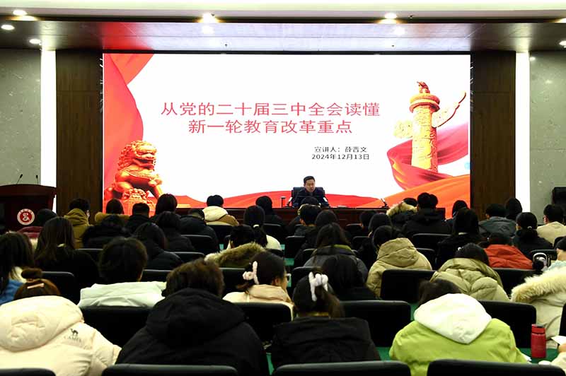 薛晋文以“从党的二十届三中全会读懂新一轮教育改革重点”为题,围绕“党的二十届三中全会关于教育的内容、新一轮教育改革侧重点、今后工作重点”等三个方面,对教育改革的相关内容进行了全面系统解读。