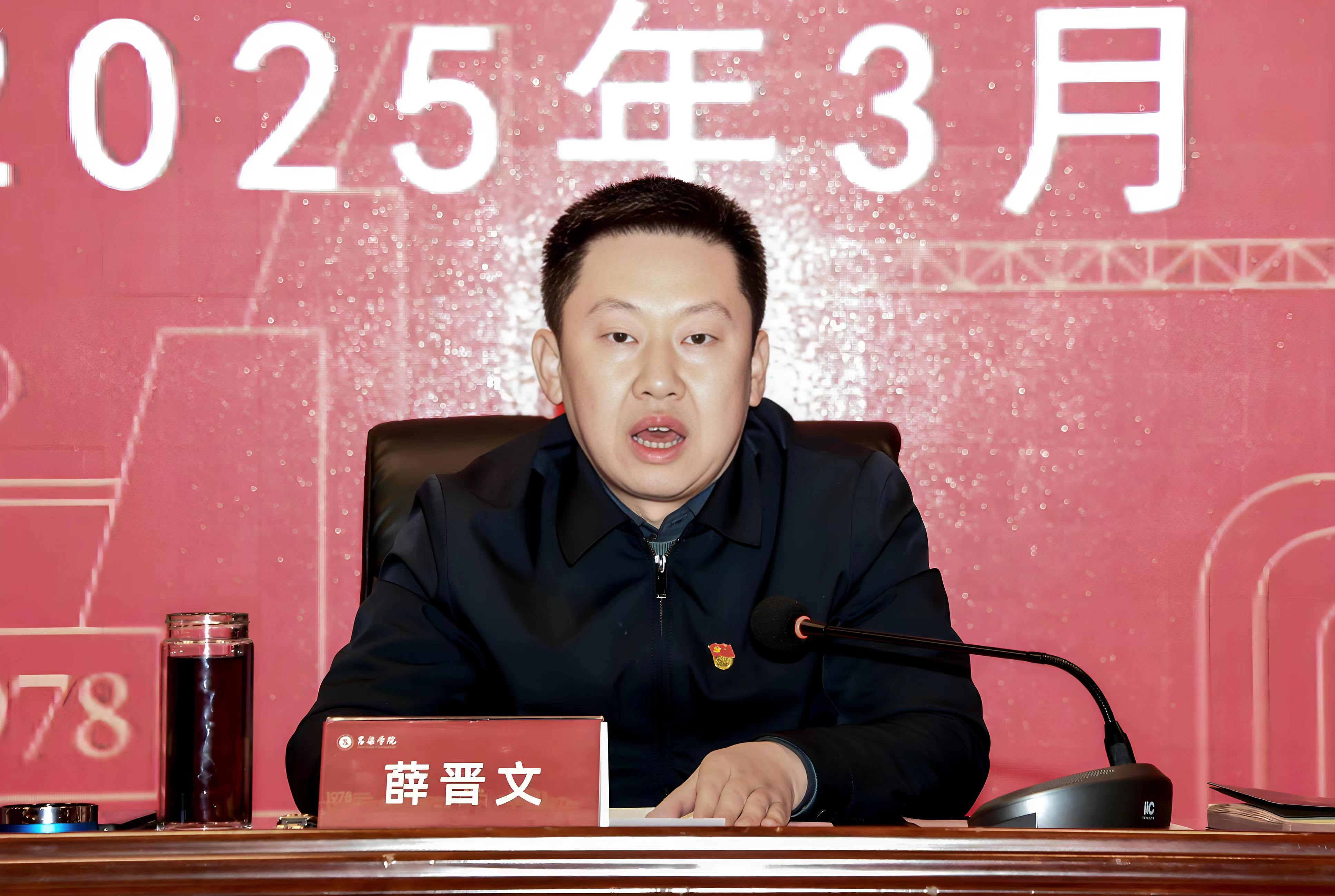 薛晋文指出,2025年是“十四五”收官之年,也是面向“十五五”新征程的战略谋划之年,我们要以习近平新时代中国特色社会主义思想为指导,全面推进党的建设,做好今年的全面从严治党工作,为学校高质量发展提供坚强政治保障。