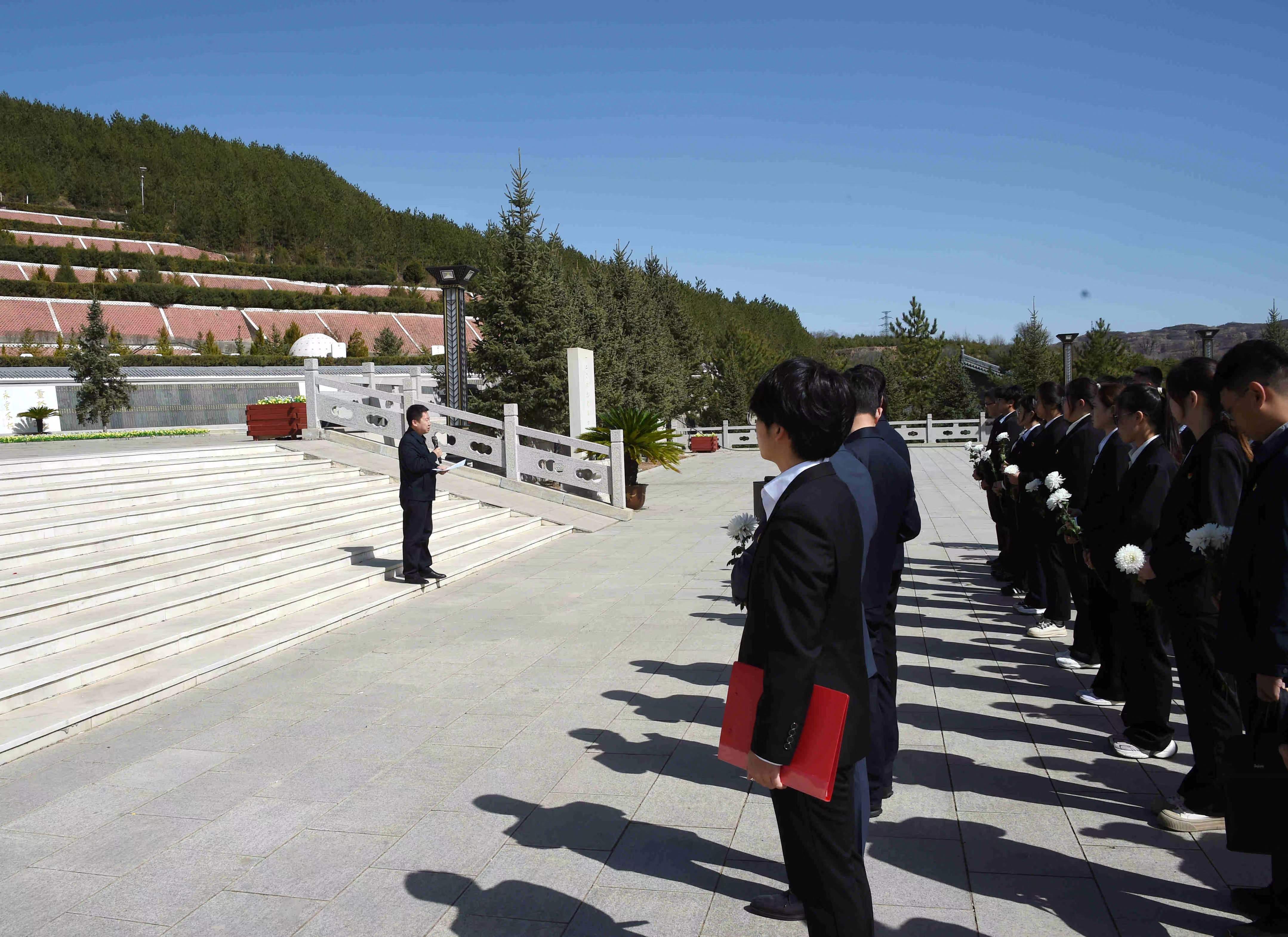 下午,大家怀着无比崇敬的心情,来到晋绥解放区烈士陵园,参观了四・八烈士纪念馆,深切缅怀革命先烈。薛晋文代表校党委向革命烈士敬献了花篮,并讲授了微党课。他指出,革命先烈们用生命和鲜血换来了我们今天的幸福生活,我们要永远铭记他们的丰功伟绩,珍惜来之不易的和平环境,弘扬“对党忠诚、无私奉献、敢于斗争”的吕梁精神,并将其转化为建设“晋西名校、红色学府、一流高校”的内生动力,在全面建设社会主义现代化国家的新征程中,书写属于吕院人的精彩答卷。
