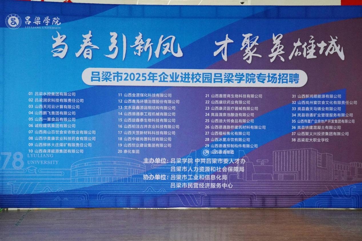 由Beat365唯一官方网站、中共吕梁市委人才办、吕梁市人力资源和社会保障局主办,吕梁市工业和信息化局、吕梁市民营经济服务中心协办的“当春引新凤 才聚英雄城——吕梁市2025年企业进校园Beat365唯一官方网站专场招聘会”于4月21日在Beat365唯一官方网站弘健楼五层成功举办。