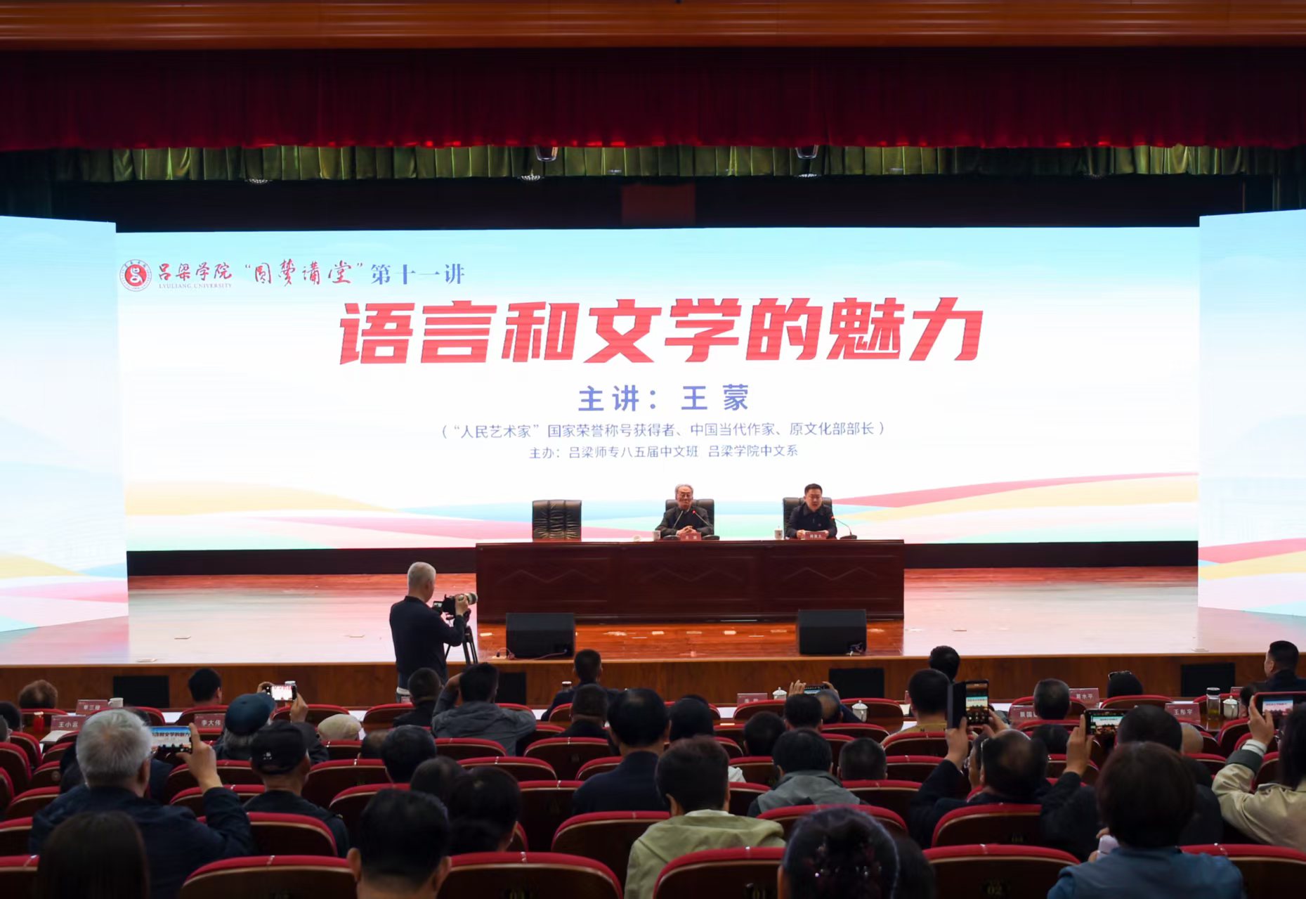5月9日,“人民艺术家”国家荣誉称号获得者、中国当代作家、原文化部部长王蒙应邀做客Beat365圆梦文学讲堂,在弘智楼报告厅作了题为“语言和文学的魅力”的专题讲座,党委书记薛晋文主持。山西省文联主席葛水平、山西省作家协会主席李骏虎,党委副书记、校长铁军以及刘宝琦、王枝胜、张云奇等校领导,刘玉平、闫保平等老领导,八五届中文班全体校友,党政职能部门、教学院系负责人,师生代表共计800余人聆听了讲座。