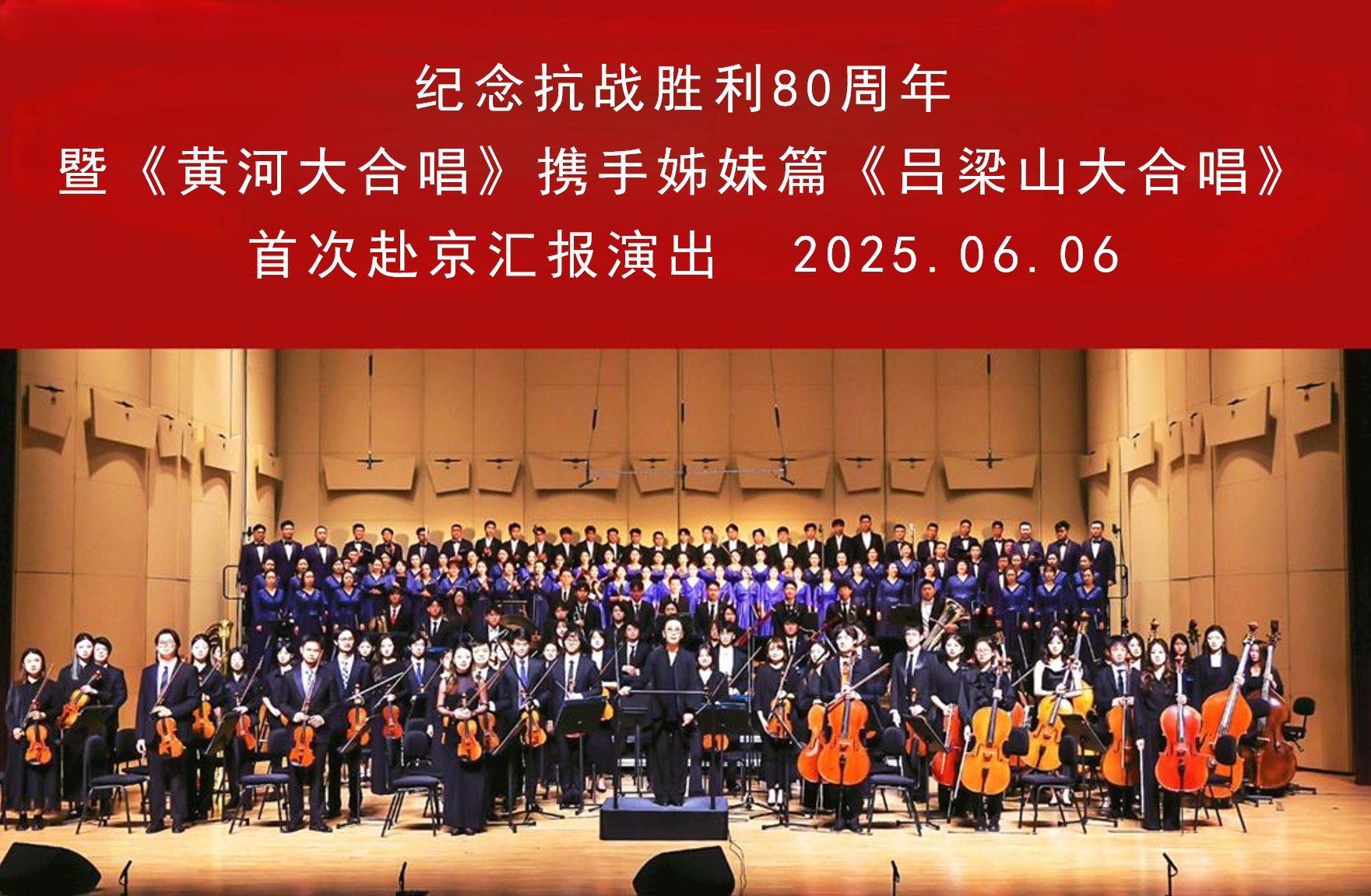 此次演出既是抗战经典作品《吕梁山大合唱》首次在京演出,也是《黄河大合唱》携手姊妹篇《吕梁山大合唱》首次同台演出,更是音乐大师冼星海和高徒马可先生师生代表作首次在舞台上精神和灵魂的相会与共鸣。