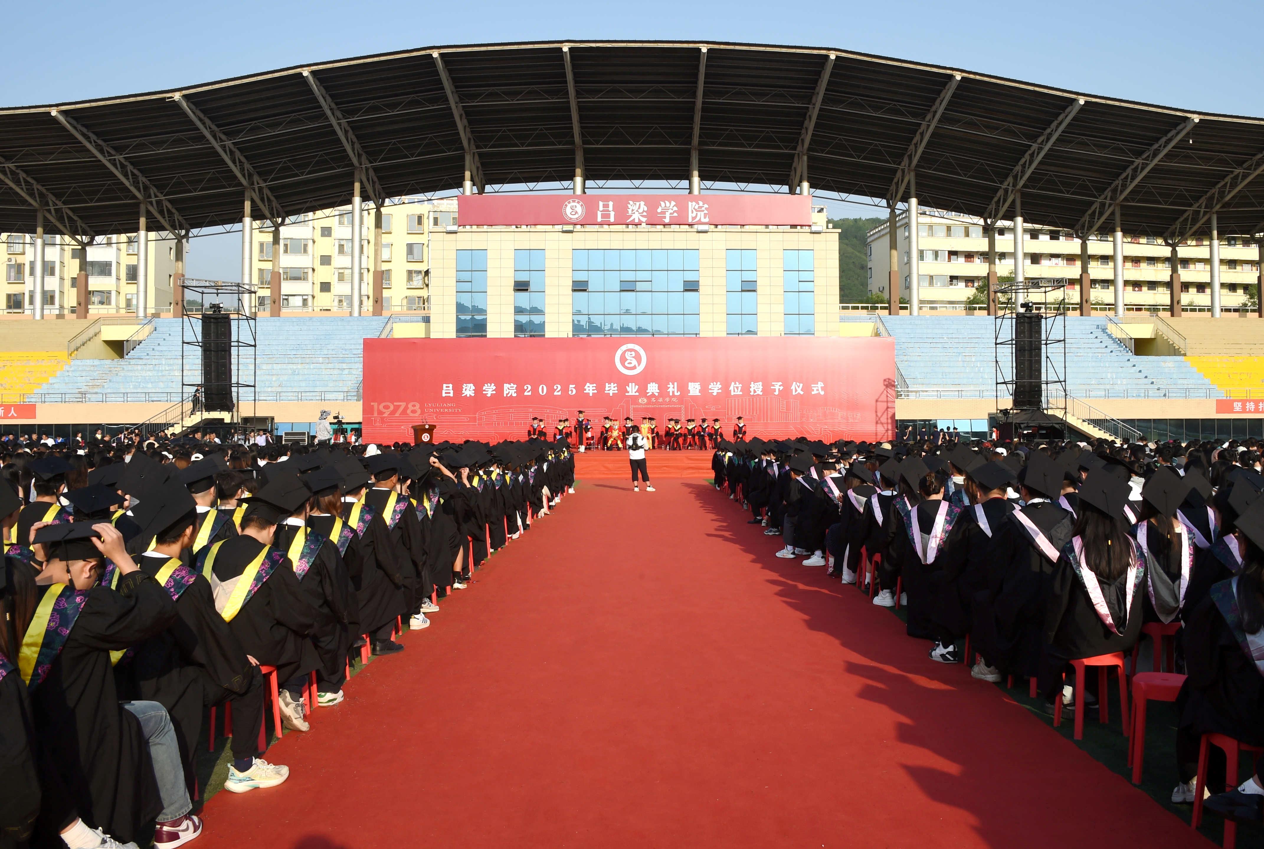 毕业典礼在雄壮的国歌声中拉开帷幕。