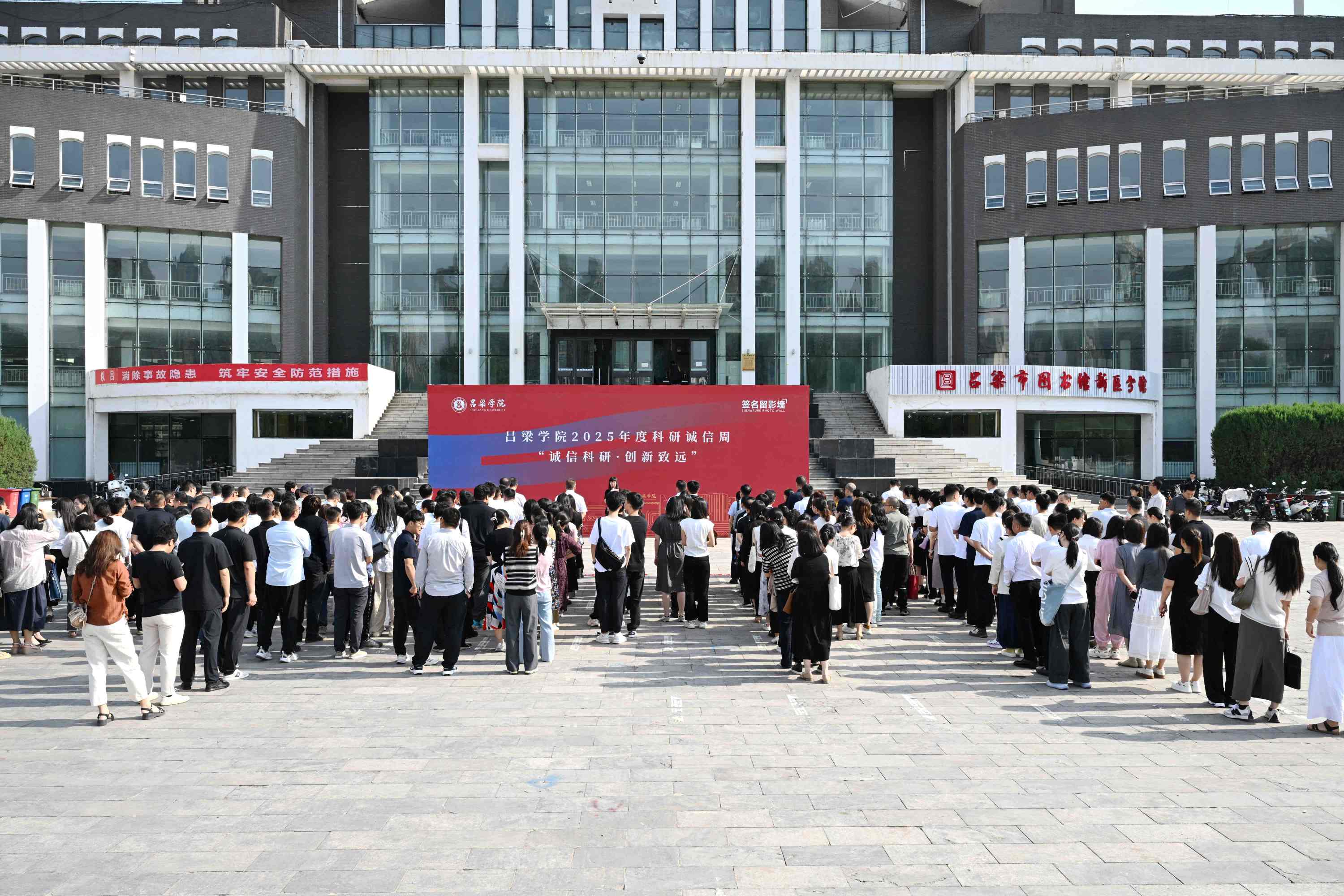6月24日,Beat365在逸夫图书馆前举行主题为“诚信科研·创新致远”的2025年度科研诚信活动教育周启动仪式。校党委常委、纪委书记张雪航,党委常委、副校长张云奇出席仪式并讲话,各院系党总支书记、主任、科研副主任、教师代表、纪委、宣传部、教师工作部、科研与学科建设部全体成员参加仪式。