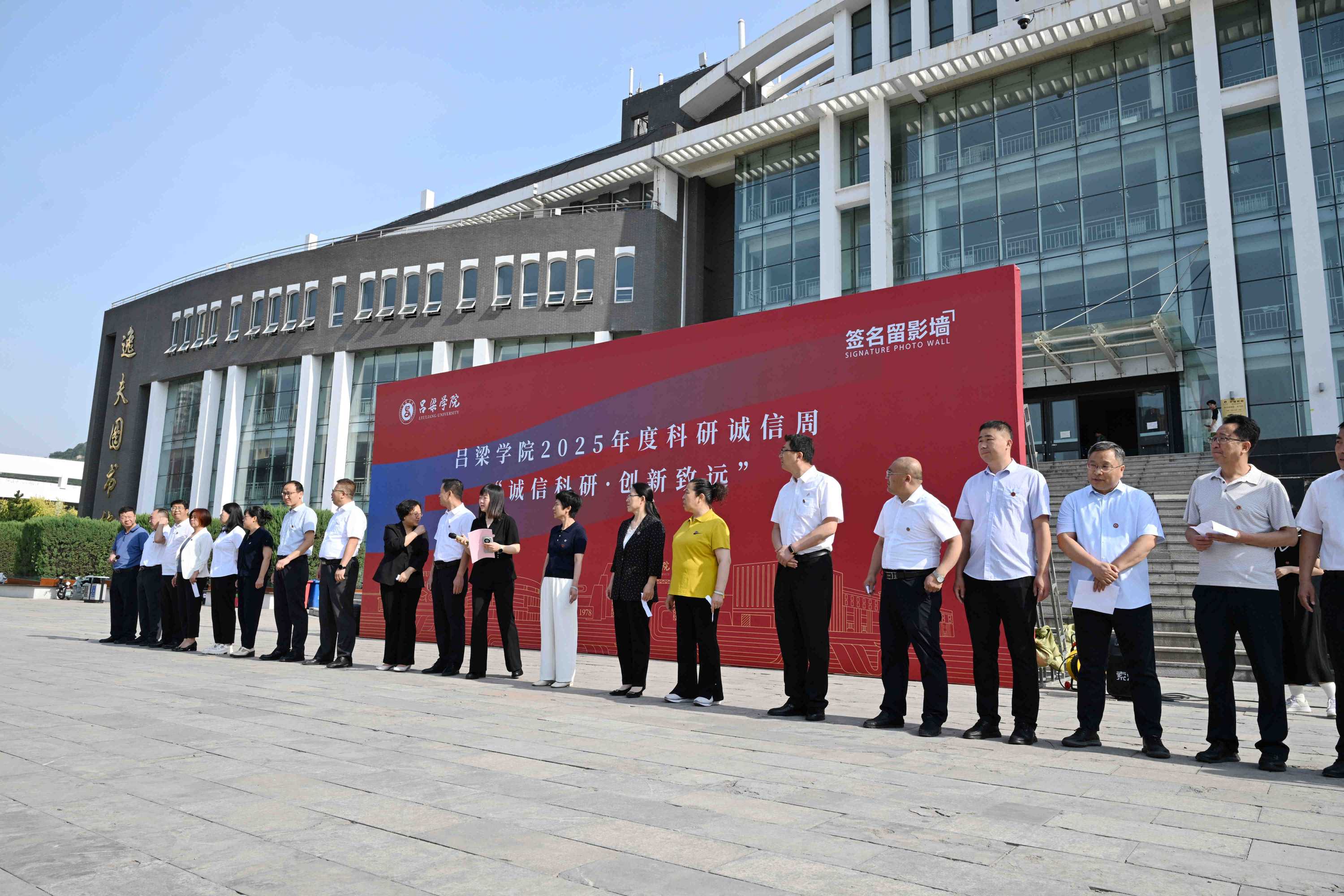 启动仪式上,党政职能部门、教学院系领导、教师宣读了倡议书,并在签名墙上进行了签名,对科研诚信作出承诺。