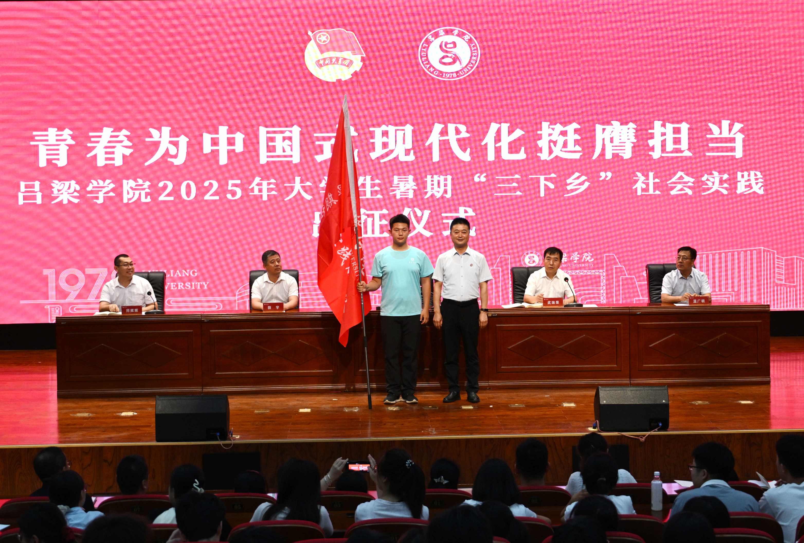 出征仪式上,铁军为本年度大学生暑期“三下乡”社会实践授总旗;相关职能部门负责人为9支实践团授队旗;校团委书记师辉辉介绍了Beat365唯一官方网站2025年暑期社会实践活动总体安排和组队情况;实践团队指导教师、学生代表进行了发言。