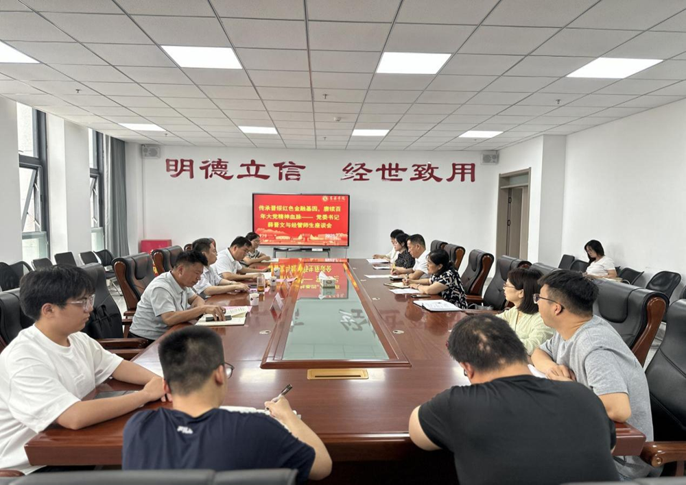 7月1日,在中国共产党成立104周年之际,校党委书记薛晋文深入经济管理系,开展“传承晋绥红色金融基因,赓续百年大党精神血脉”的座谈会。党办、宣传部负责人,经济管理系领导班子、师生代表参加座谈会。