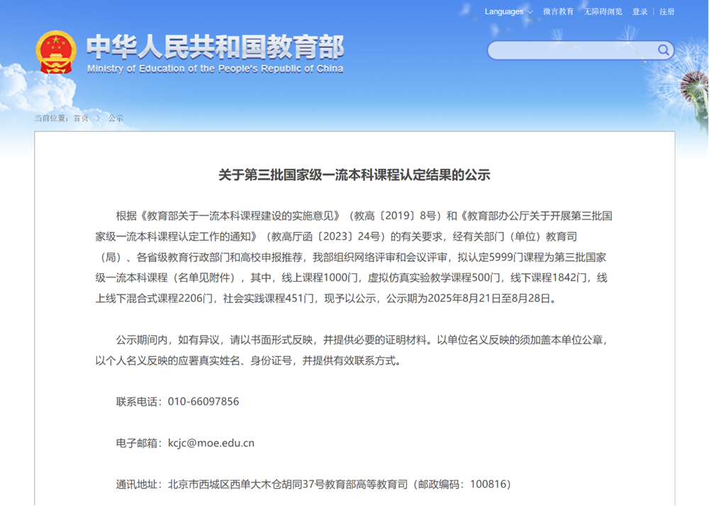 此次两门课程成功入选国家级一流本科课程,既是对相关课程团队多年来潜心教学、追求卓越的充分肯定,也是学校持续深化本科教育教学改革、强化内涵建设的集中体现。学校将以此为契机,充分发挥国家级一流课程的示范引领作用,持续深化教育教学改革,完善课程体系,全面提升人才培养质量,为学校高质量发展奠定更加坚实的基础。