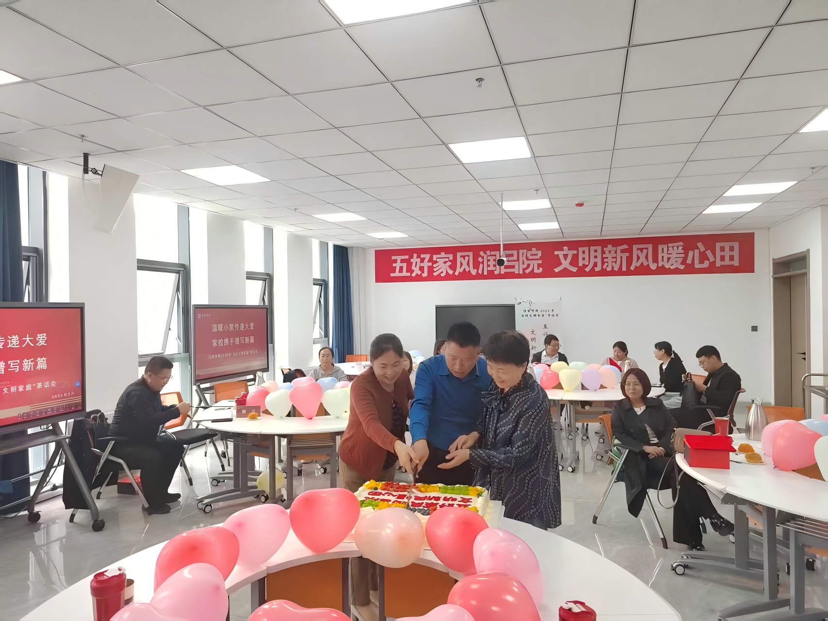 活动中,康志宏宣读了《关于表彰Beat365唯一官方网站2025年度“五好文明家庭”的决定》并组织颁奖;武瑞荣宣读了《Beat365唯一官方网站五好文明家庭建设倡议书》;李静、于艳琴、成国栋共同执刀,切开刻着“五好家风润吕院 文明新风暖心田”的定制蛋糕,共享喜悦的美好情谊;获奖家庭代表进行了经验分享。