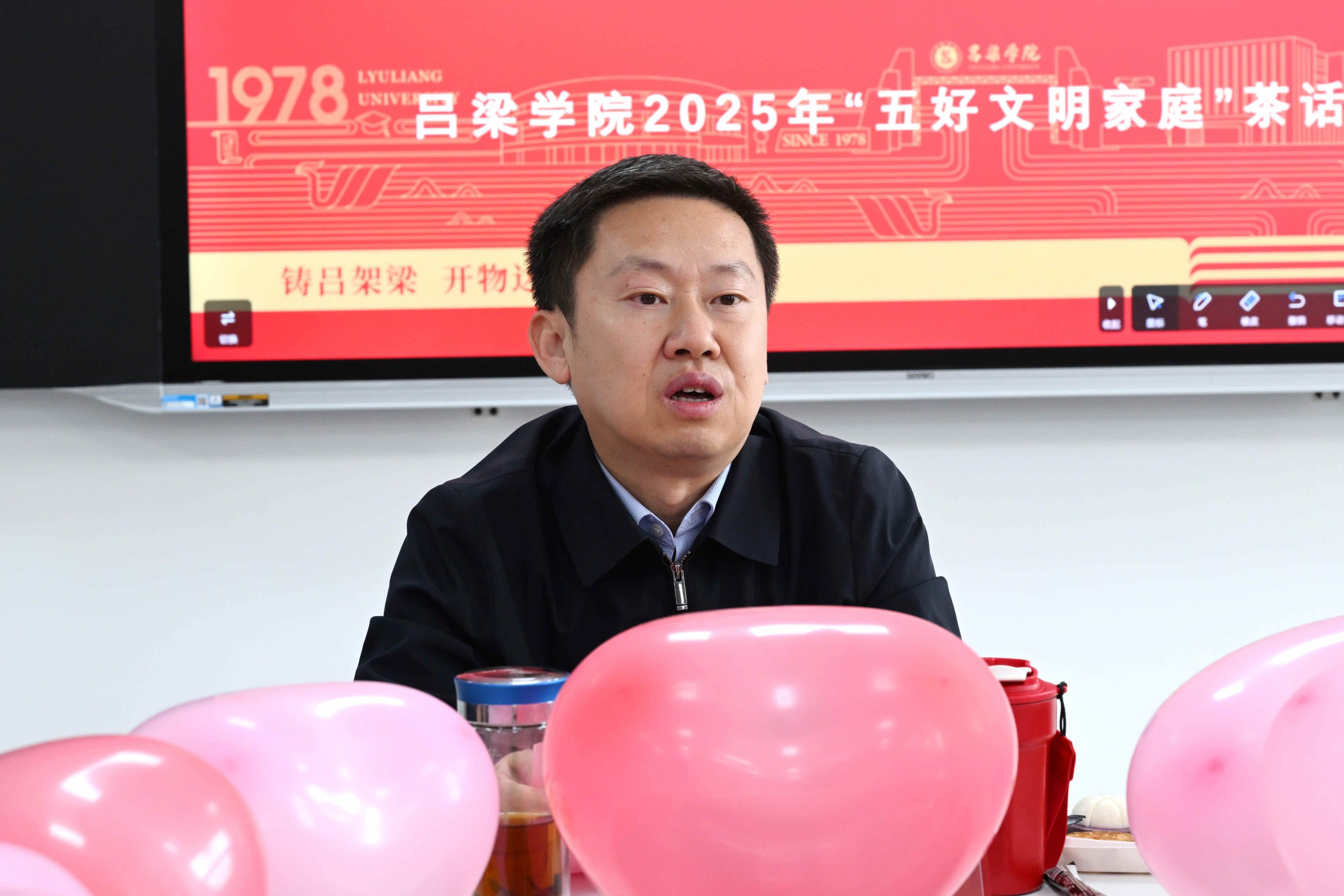 9月28日,由校工会组织的2025年“五好文明家庭”茶话会在弘礼楼205智慧教室温情举行。校党委书记薛晋文,党委常委、组织部长康志宏,党委常委、宣传部长武瑞荣,妇联主席于艳琴、党委办公室主任成国栋及10个受表彰家庭代表欢聚一堂,共话家风故事,共绘文明底色。