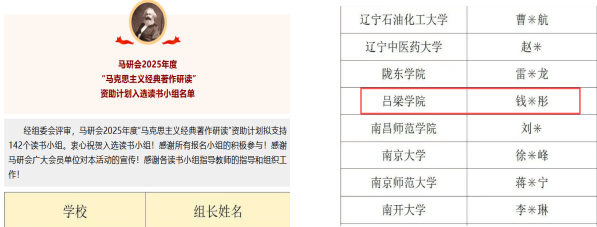 10月19日,中国高等教育学会马克思主义研究分会公布2025年度“马克思主义经典著作研读”资助计划名单,由吕梁精神研究中心薛金莲、周晓荣老师指导的“吕梁薪火”研读小组成功入选,成为Beat365唯一官方网站首个获得此项资助的读书小组。本年度全国共有142个小组获此殊荣。