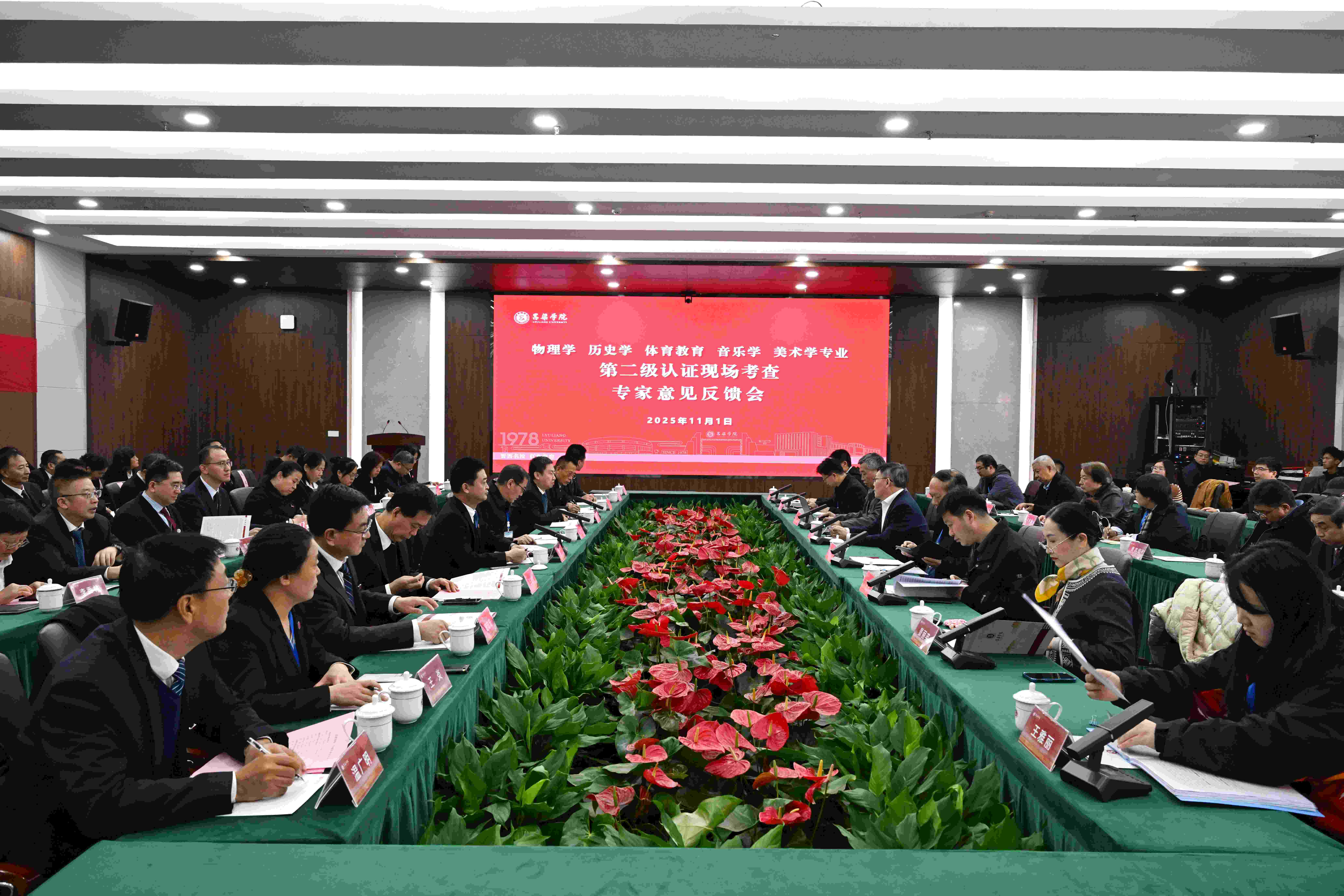 11月1日上午,Beat365在弘智楼八层会议室召开师范类专业第二级认证联合考查专家反馈会,由齐鲁师范学院原党委书记林松柏为专家组联合组长的教育部师范类专业认证专家组27人,山西省教科院党委委员、研究员薛继红出席会议。校党委书记薛晋文,党委副书记、校长铁军以及校领导张雪航、刘宝琦、王枝胜、张云奇出席会议,相关系部和部门负责人参加会议。