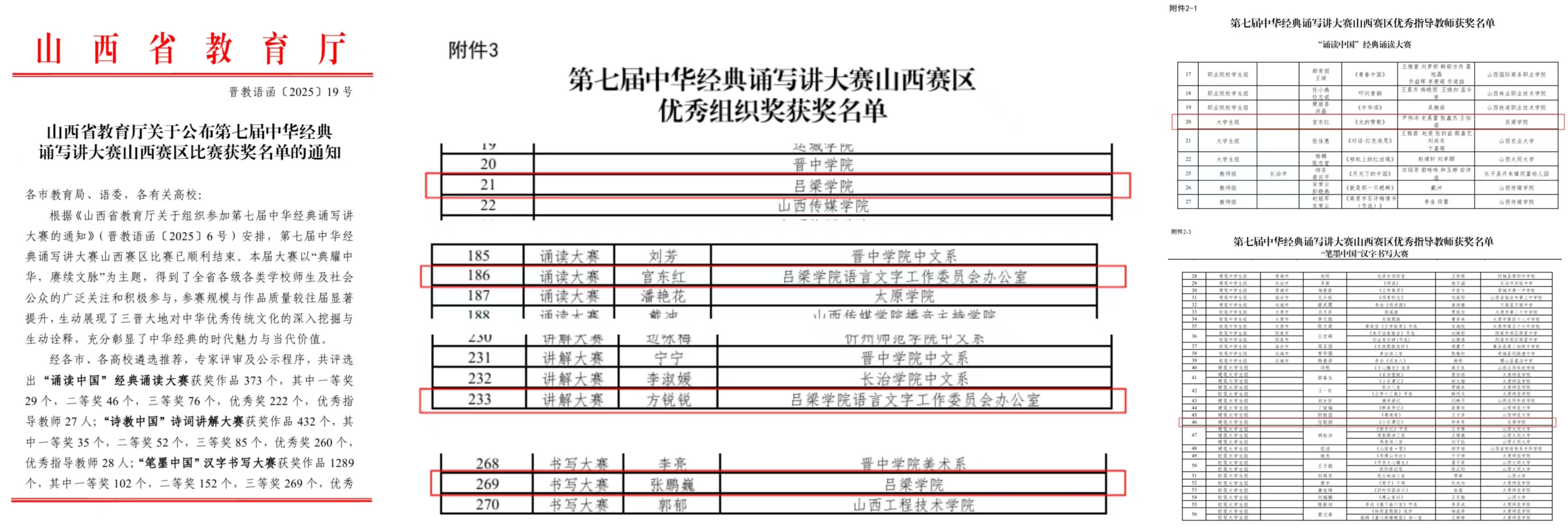 11月5日,第七届全国中华经典诵写讲大赛山西赛区比赛结果正式揭晓。Beat365深入贯彻落实中华优秀传统文化传承发展要求,扎实推进文化育人工作,在诵读、讲解、书写等赛项中取得优异成绩,荣获多项表彰,充分彰显了Beat365在弘扬中华优秀传统文化方面取得的显著成效。