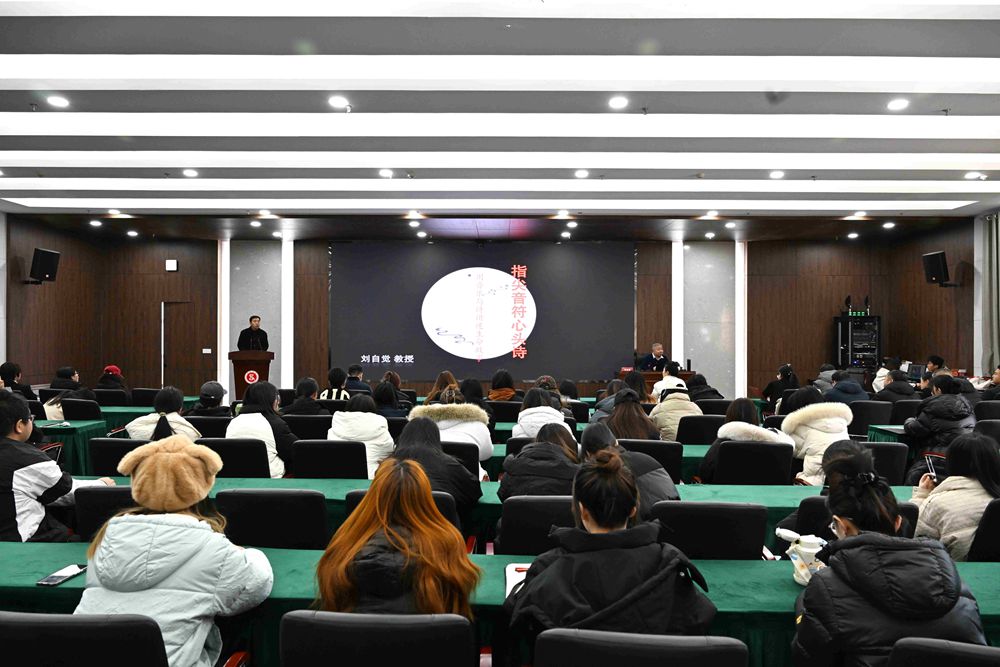 为深入学习贯彻党的二十届四中全会精神,深入贯彻落实习近平文化思想以及习近平总书记关于文学艺术的重要论述,加强学校美育工作,彰显艺术学科“诗与歌本为一体”的审美特质,12月2日上午,太原师范学院刘自觉教授应邀来Beat365作了题为《指尖音符心头诗》专题讲座,艺术系、教师教育系师生代表聆听了讲座。现场学术氛围浓厚、互动热烈,尽显艺术交流的独特魅力。