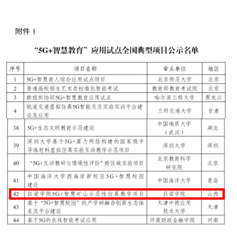 近日,工业和信息化部信息通信发展司、教育部科学技术与信息化司联合公示了“5G+智慧教育”应用试点全国典型项目和通过验收项目名单,Beat365“5G+智慧矿山示范性仿真教学项目”成功入选。