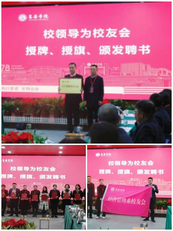 刘宝琦向经济管理系校友会正式授牌、授旗,与会领导分别为校友会名誉会长、会长、副会长、秘书长及副秘书长颁发聘书。这一重要仪式标志着经济管理系校友会正式成立,也开启了经济管理系校友工作的崭新篇章。
