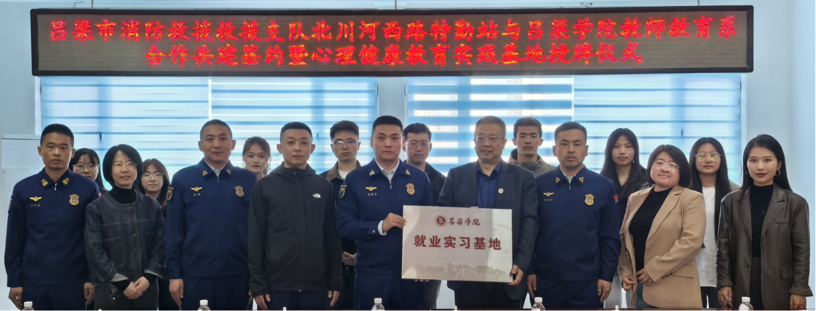 为进一步拓宽应用心理学专业学生实习就业渠道,提升实践教学质量,服务于应用型心理学专业人才培养目标,4月14日,教师教育系与吕梁市消防救援支队北川河西路特勤站签订了合作共建协议,举行了就业实习基地授牌仪式。