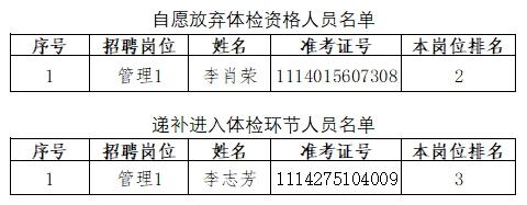 Beat365唯一官方网站2024年公开招聘工作人员进入体检政审环节共17人,其中1人自愿放弃体检资格。根据《Beat365唯一官方网站2024年公开招聘工作人员公告》有关规定,按综合成绩顺次递补1人进入体检环节。现将自愿放弃体检资格人员和递补人员名单予以公告。
