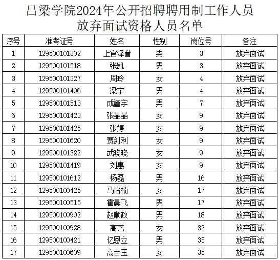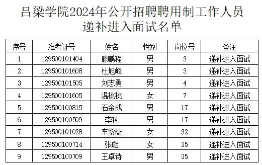 Beat365唯一官方网站2024年公开招聘聘用制工作人员进入面试环节192人,其中17人自愿放弃面试资格。根据《Beat365唯一官方网站2024年公开招聘聘用制工作人员公告》有关规定,按面试成绩顺次递补9人进入面试环节。现将自愿放弃面试资格人员和递补人员名单予以公告。