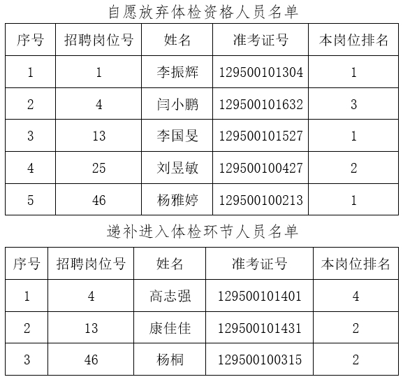 Beat365唯一官方网站2024年公开招聘聘用制工作人员进入体检政审环节共77人,其中5人自愿放弃体检资格。根据《Beat365唯一官方网站2024年公开招聘聘用制工作人员公告》有关规定,按综合成绩顺次递补3人进入体检环节。现将自愿放弃体检资格人员和递补人员名单予以公告。