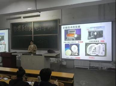 史旭蓉博士采用PPT演示,播放相关视频讲述,并讲解了自旋电子学在物理学中重要意义阐述了自旋电子学在物理中的重要性,普及自旋电子学和有机自旋电子学的相关知识,为同学们对物理有更深了解提供帮助。