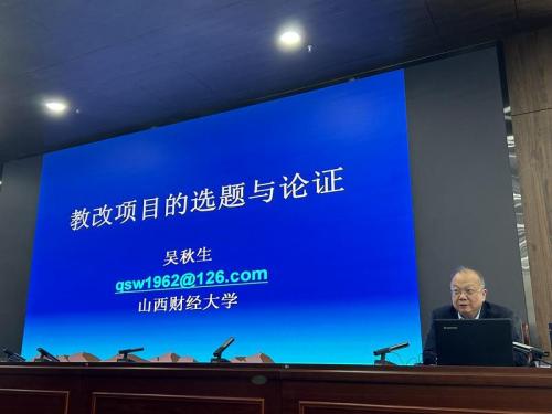 吴秋生教授是国家一流专业建设点负责人、国家一流线下课程《审计学》负责人、教育部审计专业研究生教指委委员、山西省优秀学术带头人,有着丰富的科研经验和丰硕的科研成果。在讲座中,吴教授从教改项目选题、提出问题、分析问题、解决问题、效果及其检验五个方面对教改项目的选题与论证过程进行了详细阐述,并结合具体案例分享了教改项目课题申报书的撰写要求、技巧和注意事项。