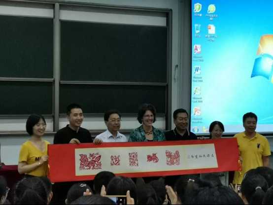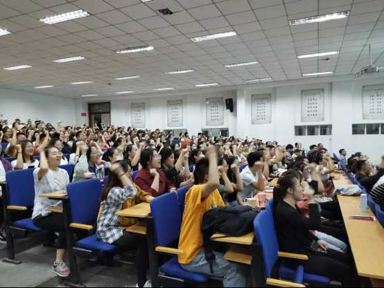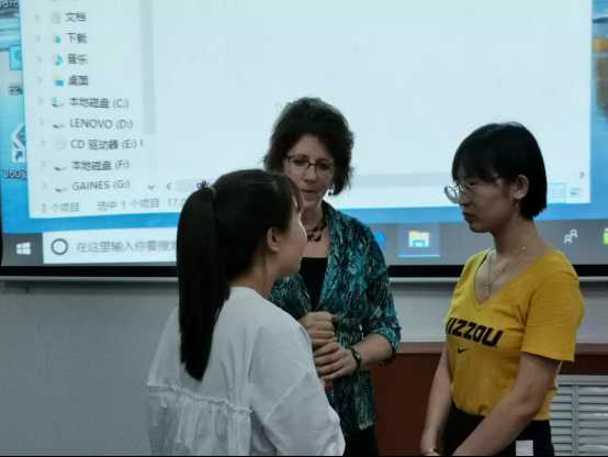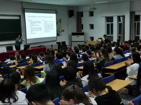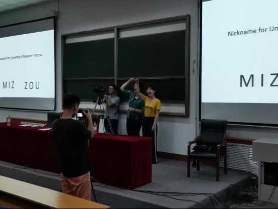在讲座的尾声茱莉亚•盖恩斯博士与所有的同学共同大喊"MIZ ZOU"最后茱莉亚•盖恩斯博士邀请有问题的同学单独提问并对其解惑。