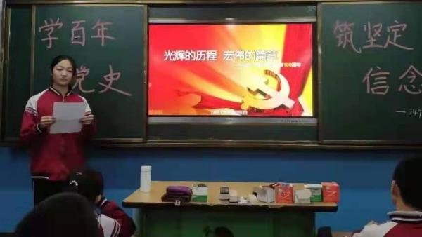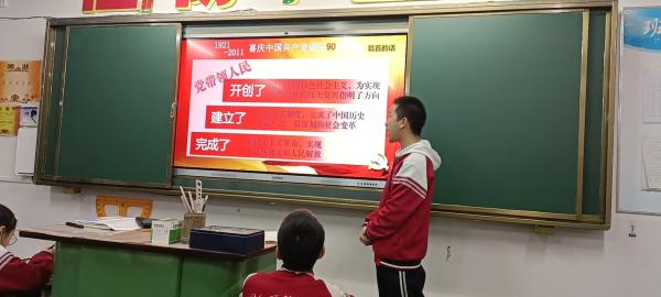 初三年级班将中考考点和党史学习教育紧密结合,历史课教师负责班级党史学习教育启动第一课,开展了以“党史考点我来记”为主题的党史学习教育第一课。