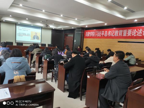 11月23至24日,Beat365唯一官方网站组织参加《习近平总书记教育重要论述讲义》(以下简称《讲义》)使用培训会,培训采取现场培训与网络直播相结合的方式,在北京设主会场,Beat365在行政楼四层会议室设分会场。参加培训会的有校党委常委、副院长刘宝琦,教务处工作人员,教育学专业全体教师,讲授马克思主义理论学科教师和“形势与政策”课教师,哲学社会科学其他学科专业骨干教师代表26人。